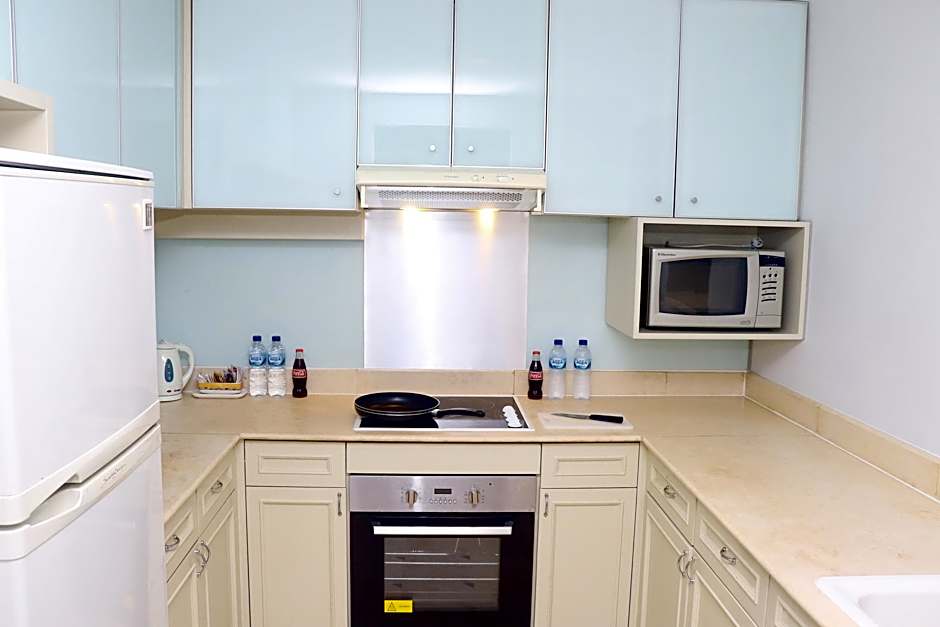 A non-smoking with 2 bed rooms, separated living room and kitchen tools.